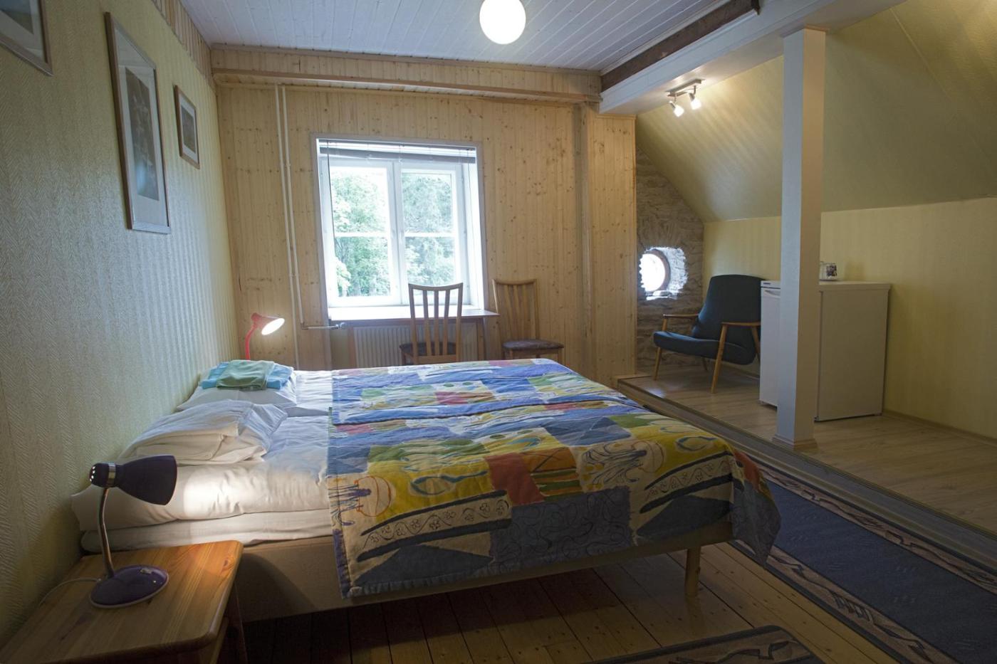 The rooms of the Heaska manor are simply furnished, done in bright pastel colours. Each has a private bathroom with a shower and is heated.