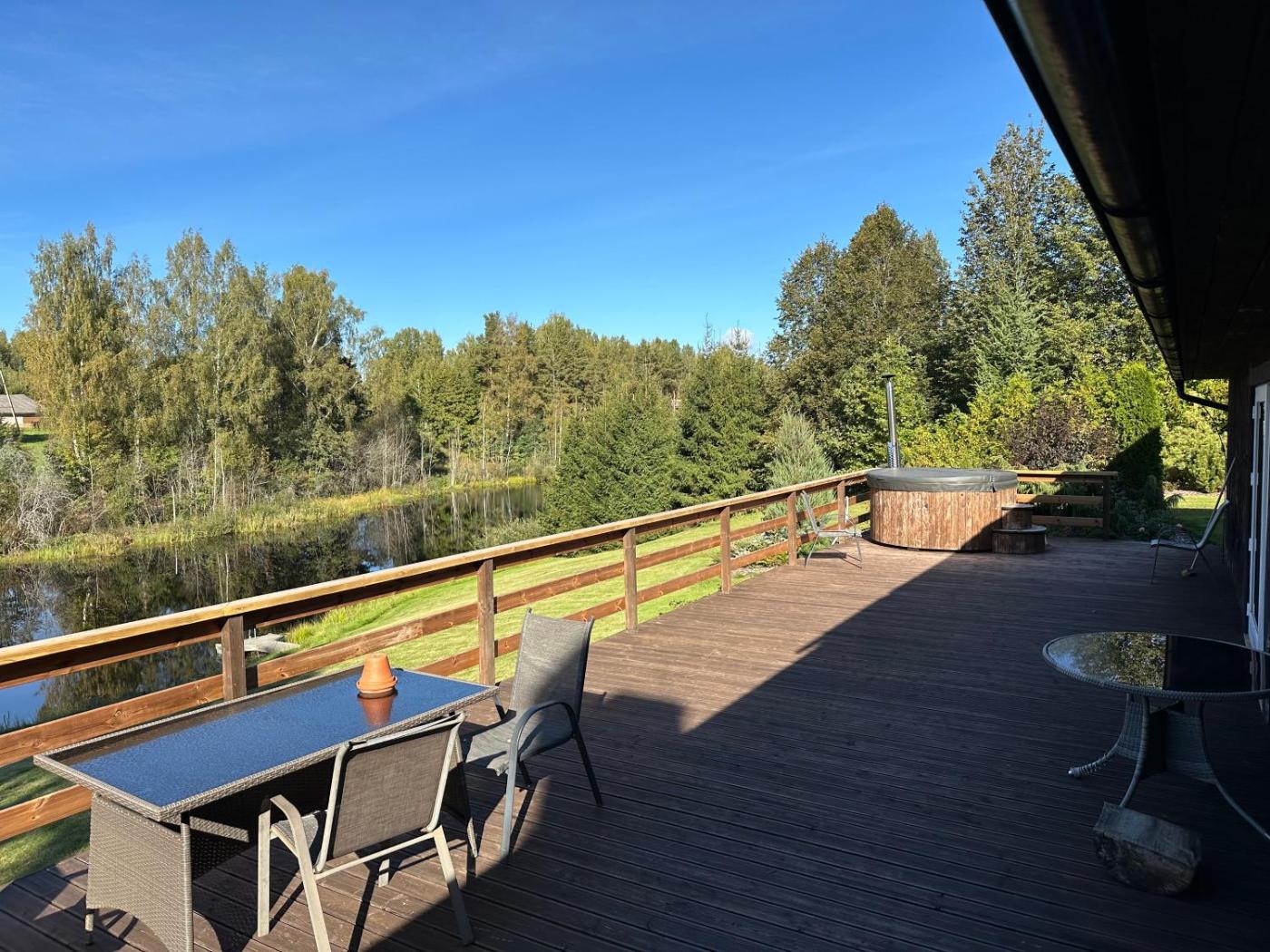 Four-Bedroom House. This luxurious holiday home has a hot tub, a sauna and a fireplace. Guests will find a stovetop, a refrigerator, a dishwasher and kitchenware in the kitchen. The holiday home also comes with a barbecue. The spacious holiday home features a washing machine, a private entrance, a terrace with lake views as well as a shared bathroom boasting a shower. The unit has 4 beds.