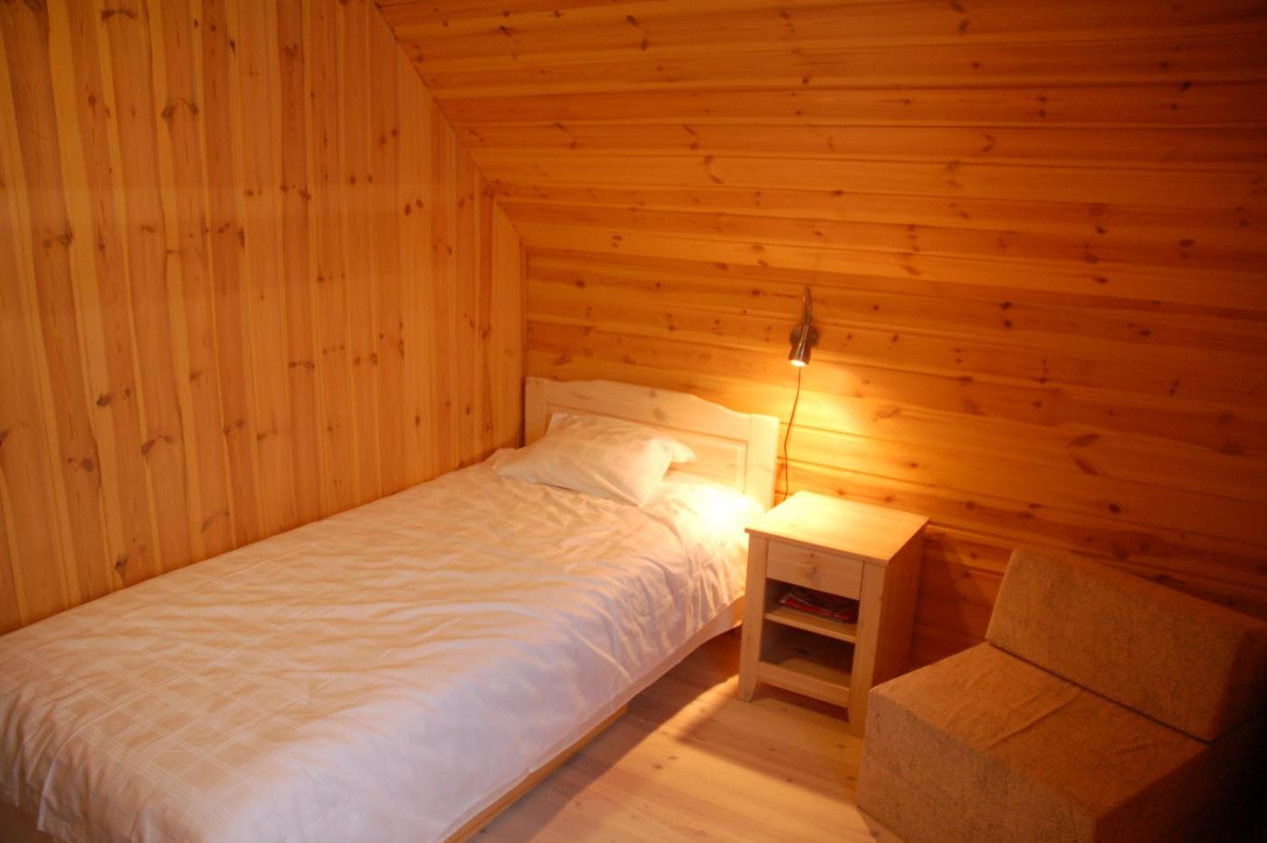 Four-Bedroom Cottage with Sauna. Wooden house with a private sauna and a kitchenette. There is a living room with a fireplace and a DVD player. ;