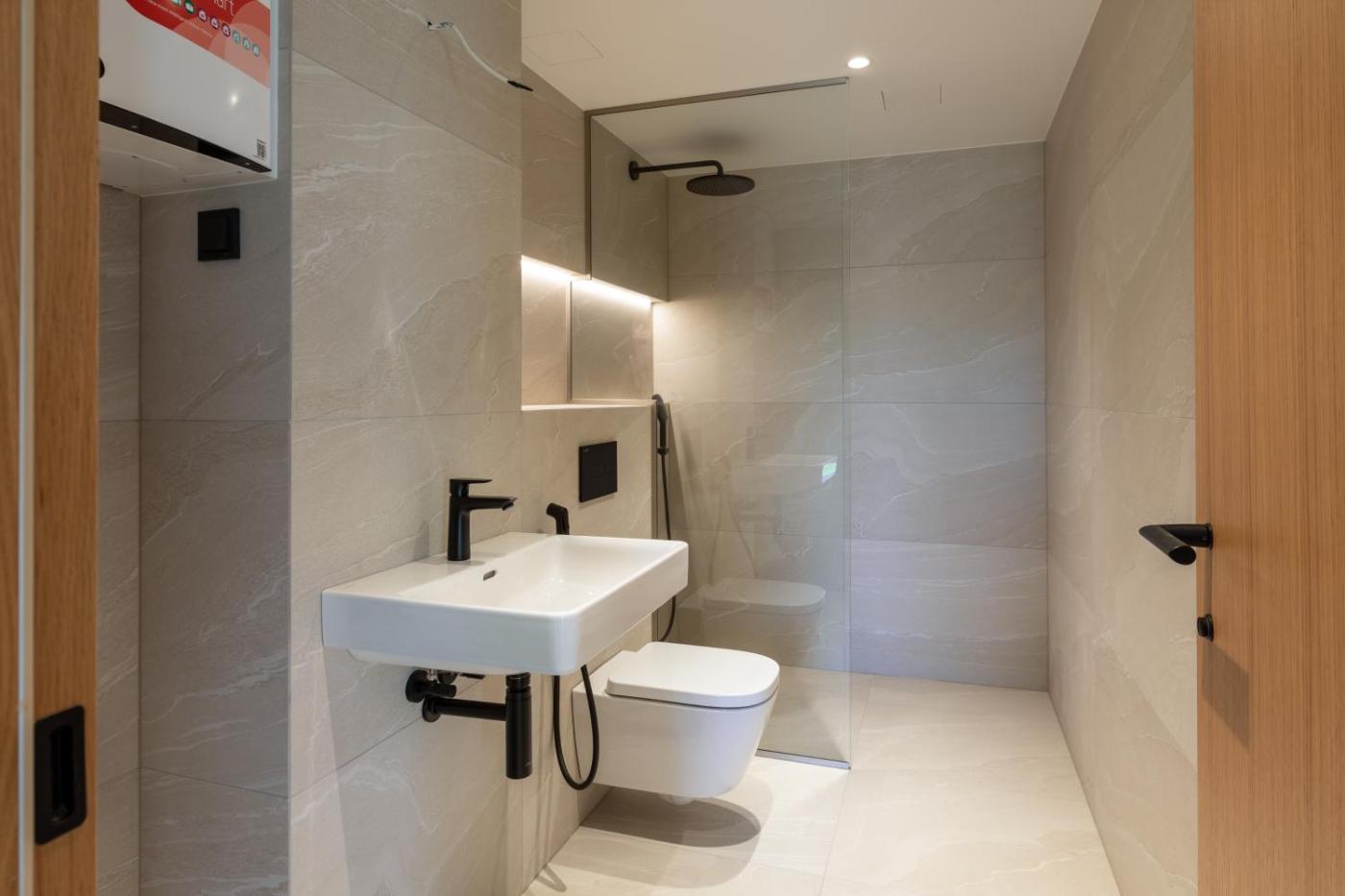 Two-Bedroom Deluxe Apartment with Balcony. Boasting a private entrance, this spacious apartment also comes with 1 living room, 2 separate bedrooms and 1 bathroom with a shower. Guests can make meals in the kitchen that features a stovetop, a refrigerator, a dishwasher and kitchenware. Featuring a balcony with garden views, this apartment also features a washing machine and a flat-screen TV with cable channels. The unit has 4 beds. ;