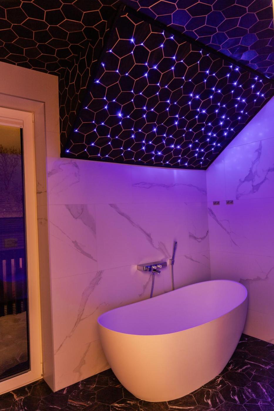 Three-Bedroom Villa. This villas special features are the hot tub and the sauna. Boasting a private entrance, this air-conditioned villa includes 1 living room, 3 separate bedrooms and 2 bathrooms with a bath and a shower. Guests will find a stovetop, a refrigerator, a dishwasher and kitchenware in the well-equipped kitchen. The villa also features a barbecue. Featuring a terrace with garden views, this villa also offers a washing machine and a flat-screen TV with streaming services. The unit has 5 beds.