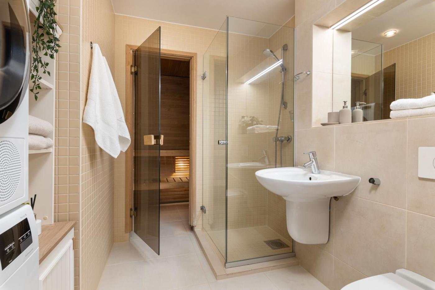 One-Bedroom Apartment. This apartments standout features are the sauna and fireplace. Guests will find a stovetop, a refrigerator, a dishwasher and an oven in the fully equipped kitchen. The apartment also includes a barbecue. The spacious apartment features air conditioning, a washing machine, a private entrance as well as a balcony with sea views. The unit has 2 beds.