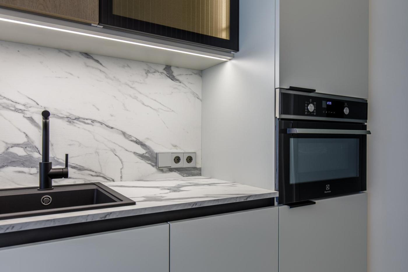 One-Bedroom Apartment. This apartment features 1 bedroom, a kitchen and 1 bathroom with a shower and a hairdryer. In the well-equipped kitchen, guests will find a stovetop, a dishwasher, kitchenware and an oven. The apartment features a washing machine, soundproof walls, a tea and coffee maker, a tiled floor, as well as a flat-screen TV. The unit has 1 bed.