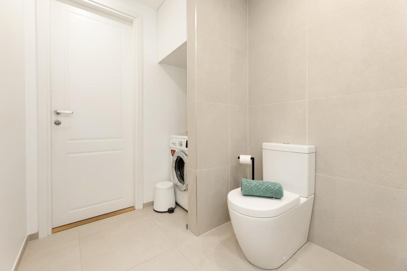 One-Bedroom Apartment. The air-conditioned apartment has 1 bedroom and 1 bathroom with a walk-in shower and a hairdryer. The fully equipped kitchenette features a stovetop, a refrigerator, kitchenware and an oven. The apartment features a flat-screen TV, a washing machine, a tea and coffee maker, a seating area as well as city views. The unit has 1 bed.