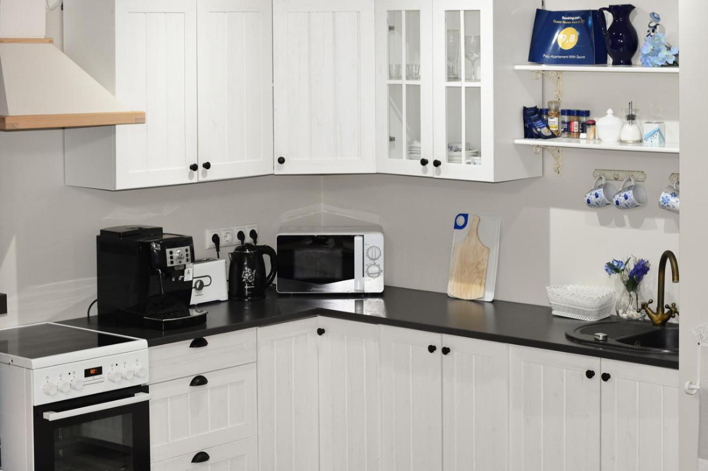 Apartment with Sauna. The sauna and fireplace are the standout features of this apartment. Featuring a private entrance, this air-conditioned apartment comprises 1 living room, 1 separate bedroom and 1 bathroom with a walk-in shower and a hairdryer. Guests will find a stovetop, a refrigerator, a dishwasher and kitchenware in the kitchen. The apartment also provides guests with a barbecue. This apartment features a washing machine, soundproof walls, flat-screen TV with cable channels, as well as chocolate for guests. The unit offers 2 beds.